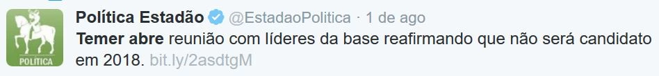 O coro da grande imprensa continuou mesmo após o interino se mostrar humildemente “honrado com a lembrança” de Maia em nota oficial. Mas deixou claro: “Não cogito disputar a reeleição”. Os grandes jornais do país seguiram a deixa e refletiram em suas reportagens a “escolha” do presidente em exercício por não concorrer ao Planalto em 2018.
