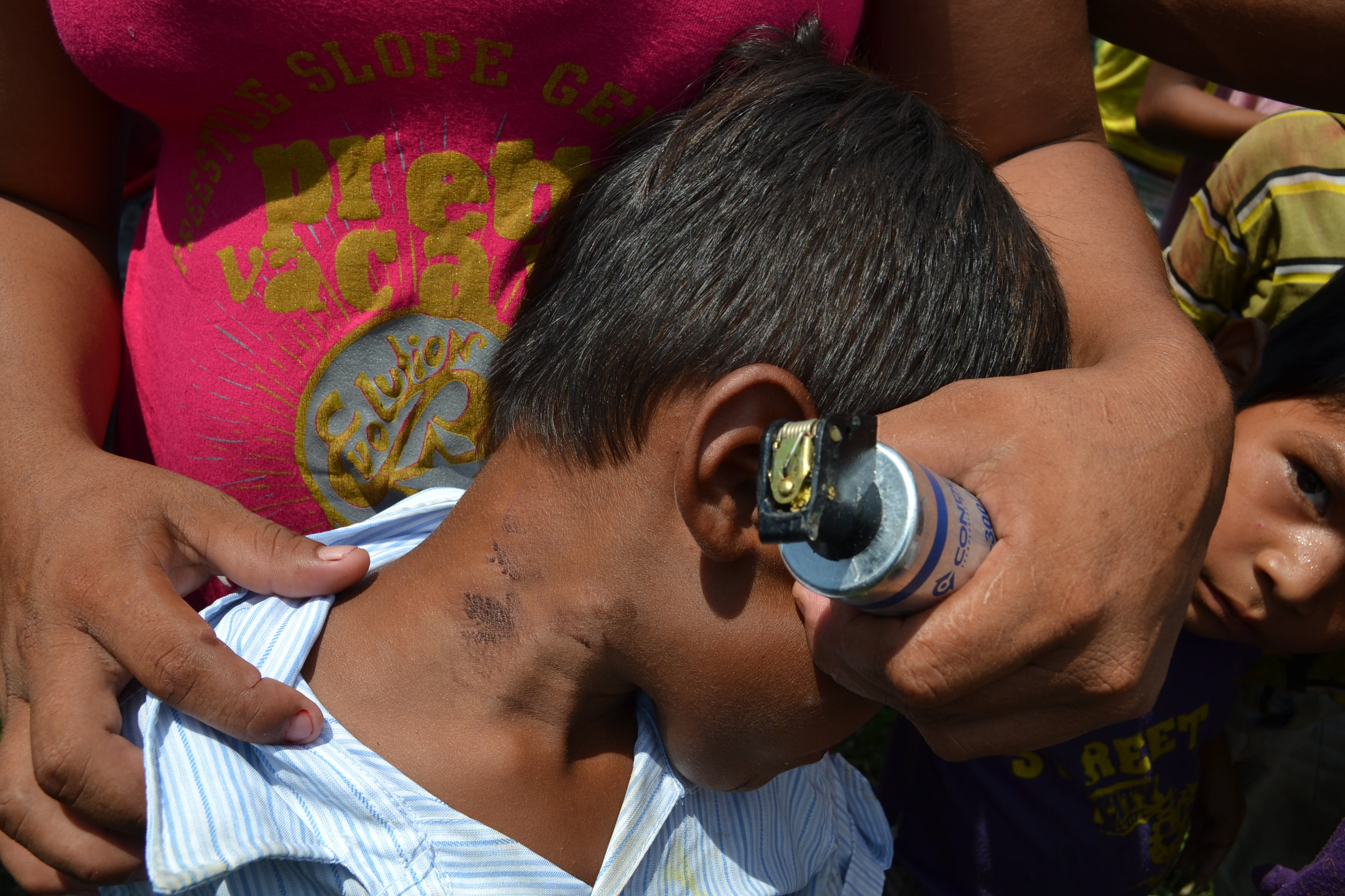 O velho Eurico Krixi Munduruku levou dois tiros, um de raspão no pé e outro no braço. Depois disso, conta, “Vi muito sangue debaixo da balsa, era o sangue do nosso parente. Eu fiquei com medo e saí correndo. Aí meu braço ficou pesado e eu não conseguia mais correr. Era a bala de fuzil que tinha pegado no meu braço. Meu neto me ajudou a chegar em casa”.