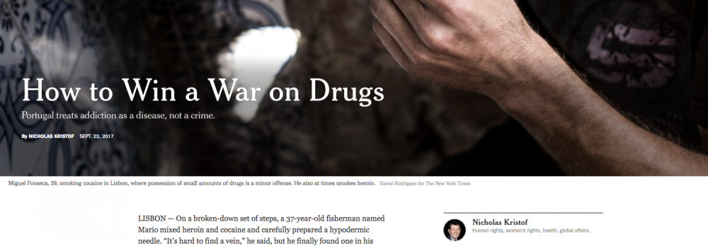 O fundamento para essa conclusão: o evidente sucesso de Portugal com a descriminalização, comparado aos terríveis fracassos de países como os EUA (e o Brasil), que continuam a tratar o vício em drogas como um problema criminal e moral, e não de saúde. Kristof escreveu: