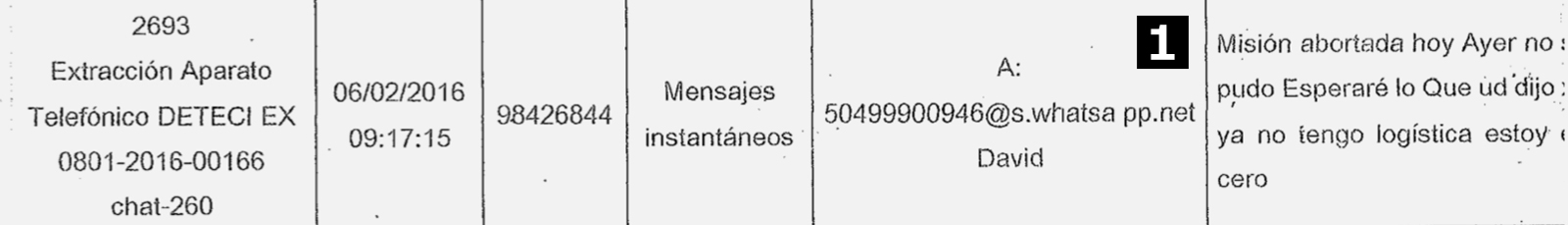 Em 22 de novembro, Castillo recebeu uma mensagem de Bustillo, que já não trabalhava para a DESA havia quatro meses. “Boa noite, Sr. Castillo. Me dê os 50%”, dizia a enigmática mensagem.