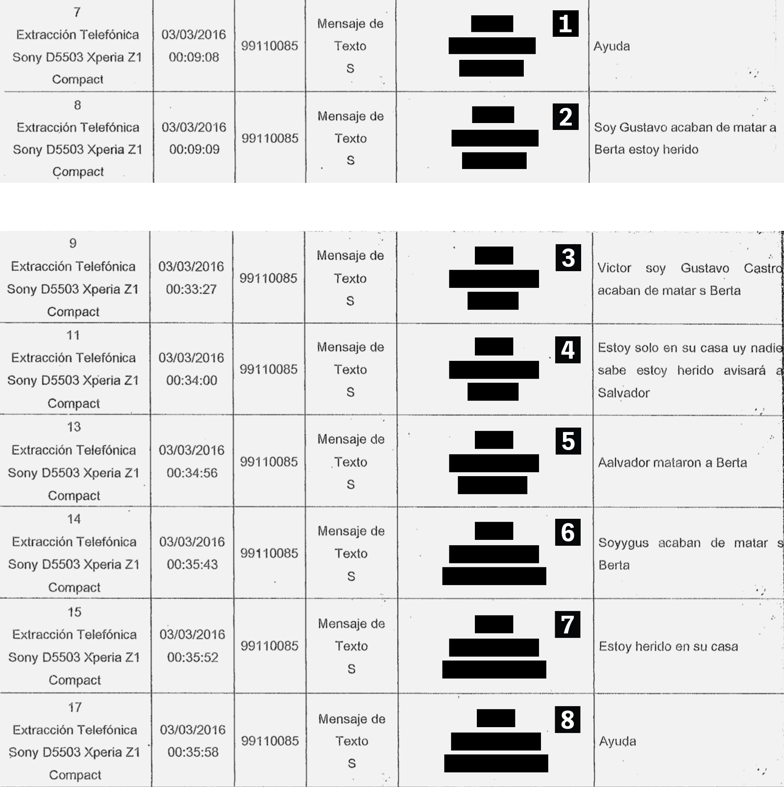 Ao mesmo tempo, Bustillo e os assassinos trocavam um turbilhão de mensagens e ligações.