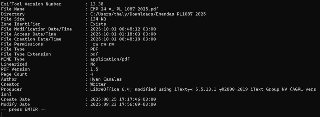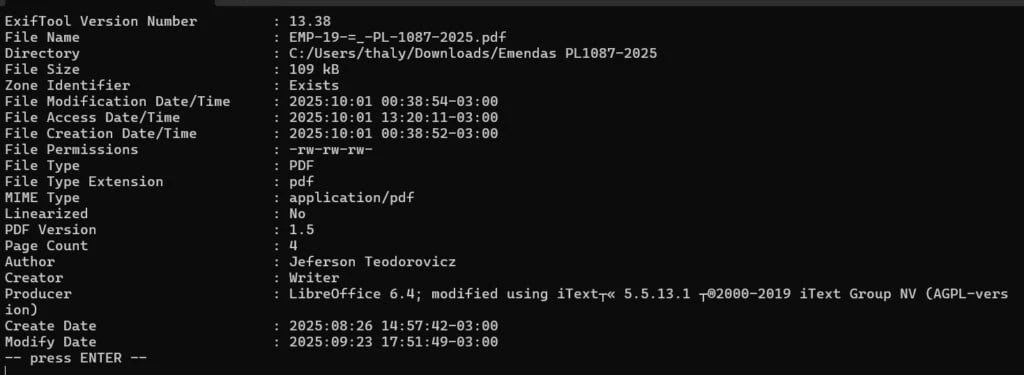 O deputado Diego Garcia disse que a emenda foi elaborada por sua equipe técnica a partir de contribuições do setor produtivo, especialmente da Federação das Indústrias do Paraná, a FIEP. O parlamentar não explicou a digital do IPA nos metadados do documento.