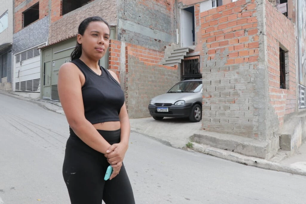 “Desde que eu me conheço por gente, eu moro aqui”, contou, também relembrando o tempo em que habitava em um barraco de madeira. “Entregaram uma casa para duas famílias: a minha e a do meu tio. Eu já tinha dois filhos. A casa era de dois quartos. Como que vive eu, meus filhos, meu marido, meu tio e os filhos dele? Não tem como. Eu ampliei por isso”, disse.