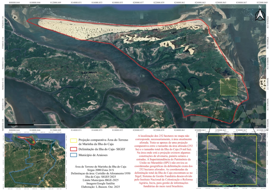 A Superintendência do Patrimônio da União no Maranhão, vinculada ao governo federal, ressaltou que o contrato de aforamento, além de se restringir a 252 hectares da ilha, não contempla as praias, manguezais, igarapés e apicuns, que são “bens de uso comum do povo”.