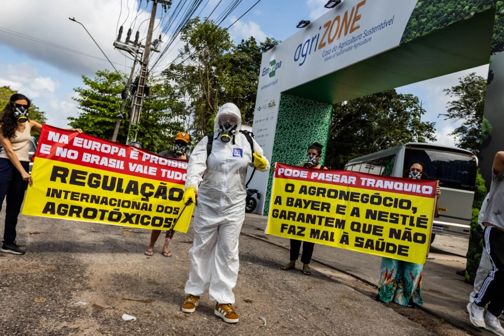 O Brasil já é, hoje, o maior consumidor de agrotóxicos do mundo, usando mais agrotóxicos em suas lavouras do que China e Estados Unidos juntos. Os agrotóxicos têm causado a contaminação de rios e populações na fronteira agrícola do centro-oeste brasileiro. Algumas das maiores empresas do setor de produção de agrotóxicos, como a Bayer e a UPL, eram patrocinadoras da Embrapa na COP30.